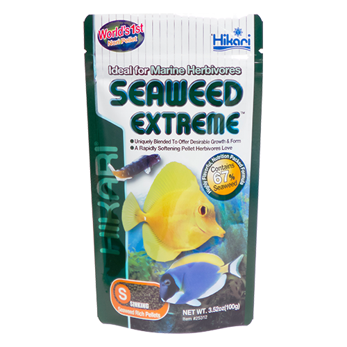 The world's first pellet for marine fish that offers an extreme amount of natural algaes. With more than 67% algae, this pellet is devoured by any marine herbivore as soon as it hits the water. Gone are the days of hanging seaweed strips and the mess they leave in your tank. Let Hikari® help you give your marine herbivores and omnivores what they need with little or no fuss.